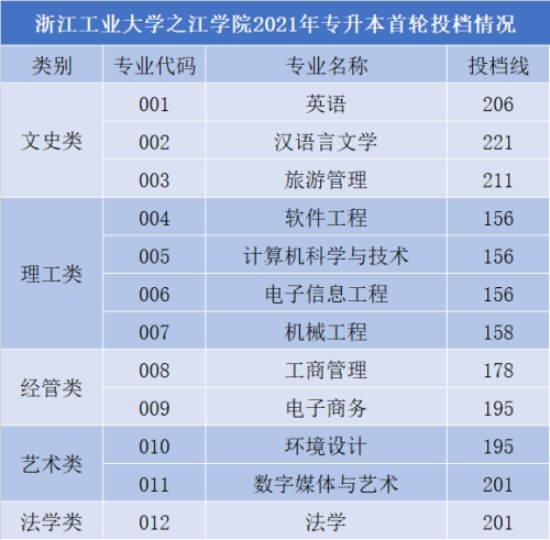 浙江工业大学之江学院2021年首轮投分数线及征求志愿