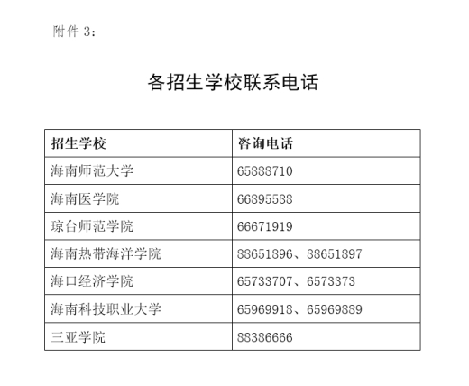 3.各招生学校联系电话