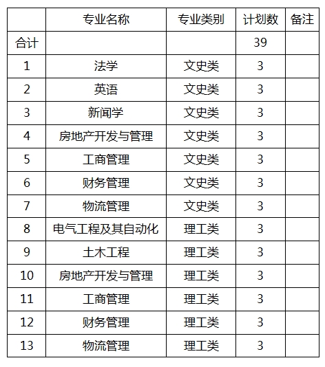 宁夏大学新华学院2019年专升本招生计划