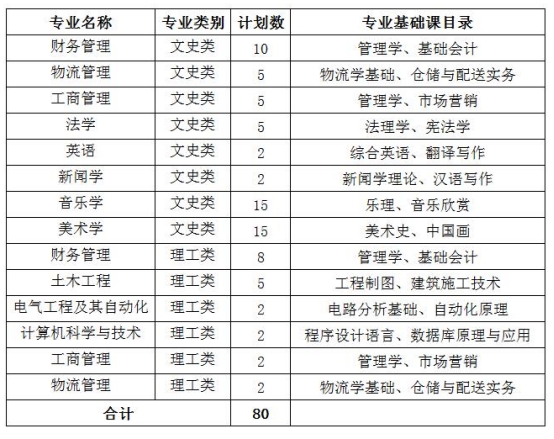 宁夏大学新华学院2019年专科升本科招生计划