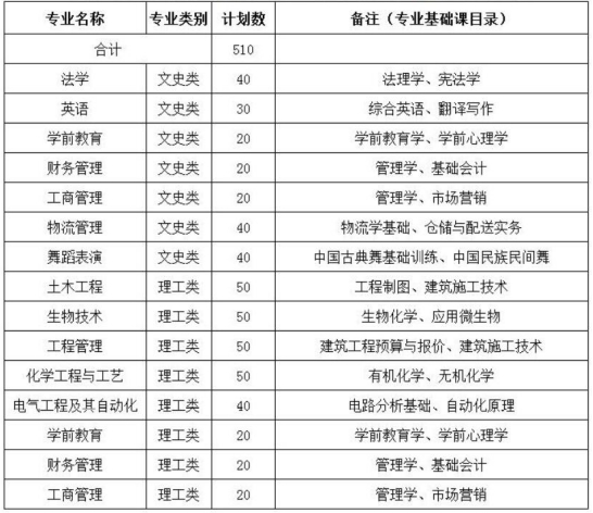 宁夏大学新华学院2021年专科升本科招生计划