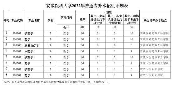 附件下载:安徽医科大学2022年普通专升本招生计划.pdf