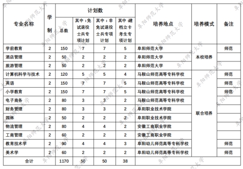 说明:阜阳师范大学2022年普通专升本招生计划以《阜阳师范大学2022年普通专升本招生章程》为准。