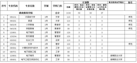 淮南师范学院2023年普通高校专升本拟招生方案的通知