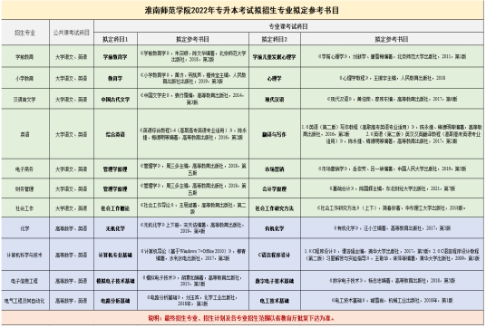 淮南师范学院2022年专升本考试拟招生专业参考书目
