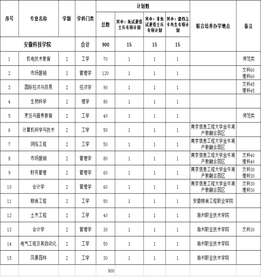安徽科技学院2020年普通高校专升本招生章程