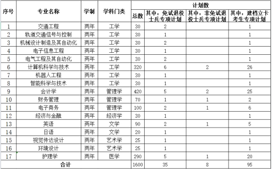 分专业招生计划表