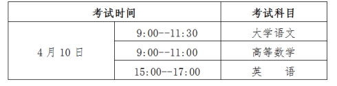 (一)文化考试科目为大学语文、高等数学和英语。