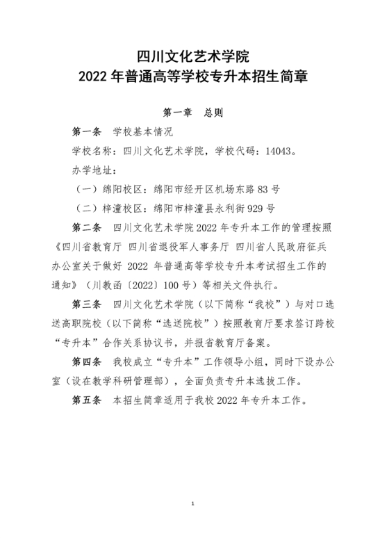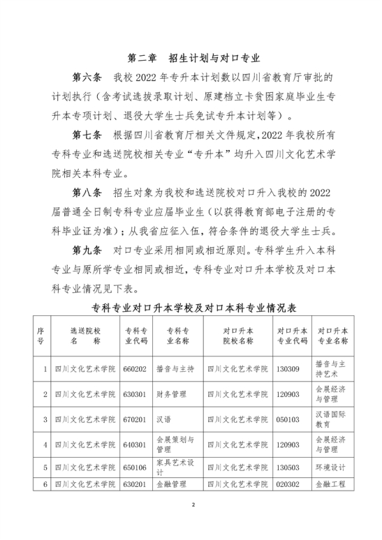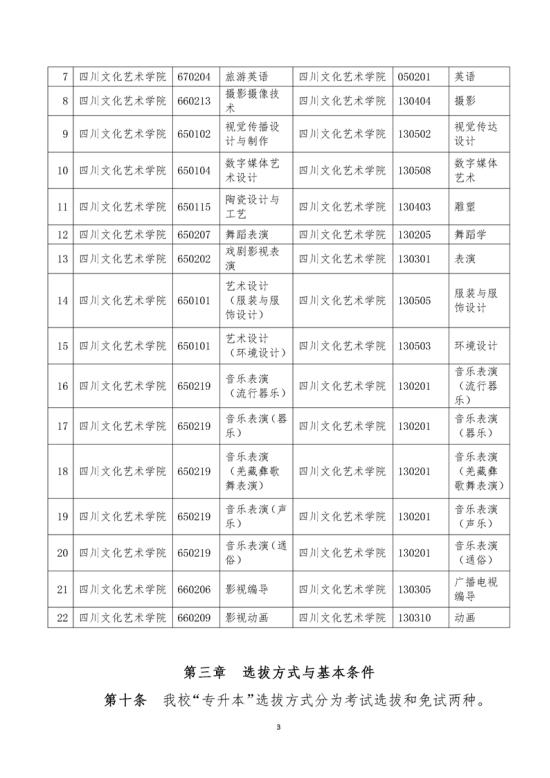 2022年四川文化艺术学院专升本招生简章