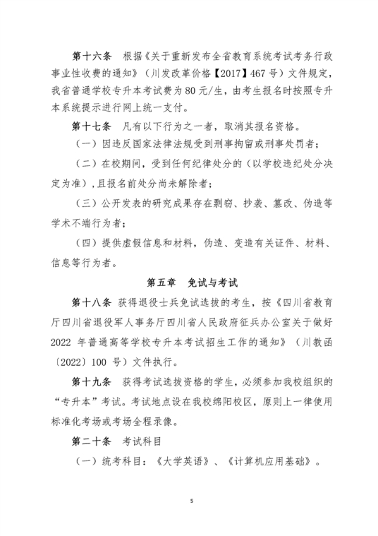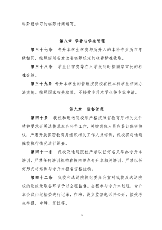 四川省2024年普通高等学校专升本考试招生工作实施规定