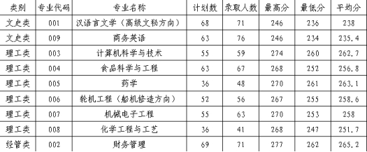 6月6日,浙江海洋大学2022年“普通类专升本”招生录取顺利进行,一次性完成全部招生计划。招生计划497人,录取552人,同分多录取55人,分专业录取分数线见下表: