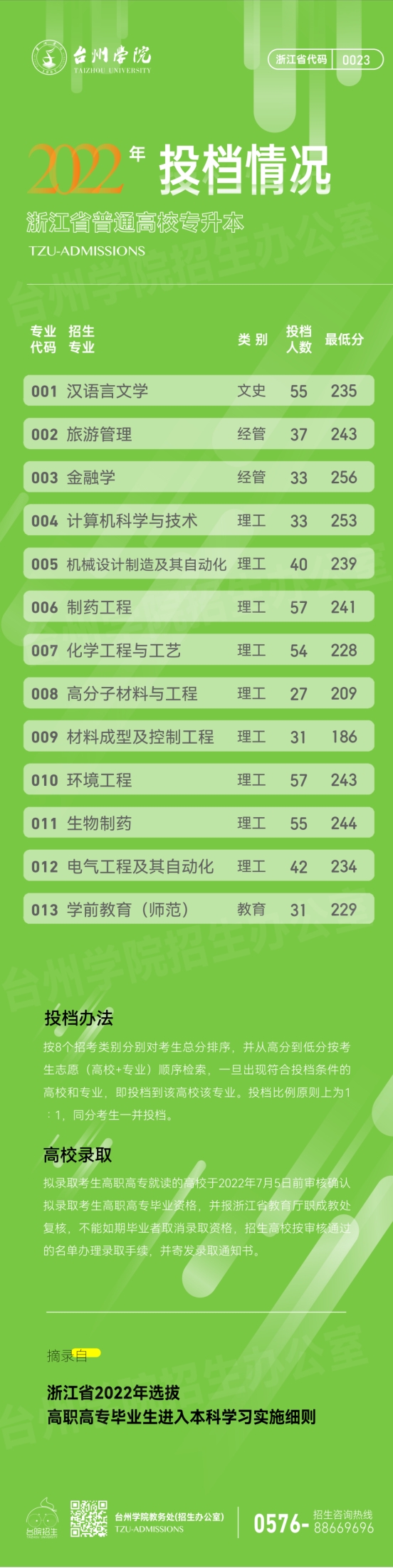 6月6日,台州学院2022年浙江省普通高校专升本招生已完成第一轮投档。
