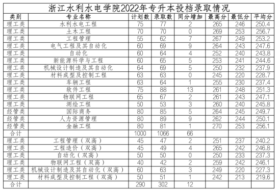 2024年湖州学院专升本首轮投档录取情况(含分数线)