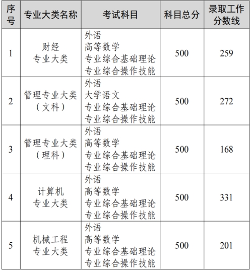 我省 2022 年普通高校“专转本”选拔考试各专业大类录取工作分数线已经省教育厅审定,现将各专业大类录取工作分数线通报如下: