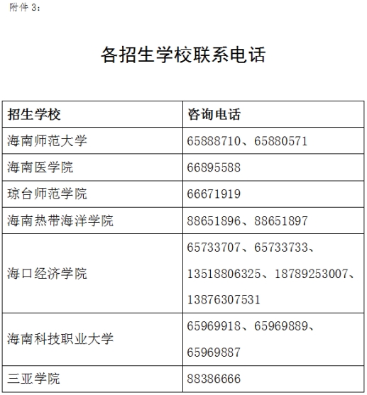 3.各招生学校联系电话
