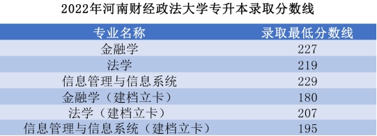 2022年河南财经政法大学专升本录取分数线