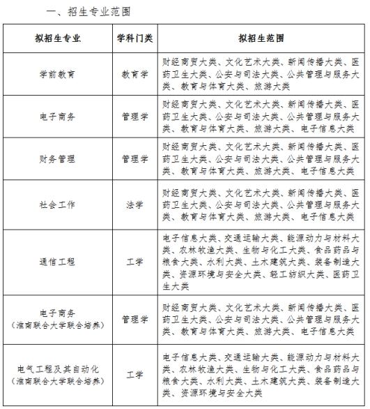 淮南师范学院2023年普通高校专升本拟招生方案的通知