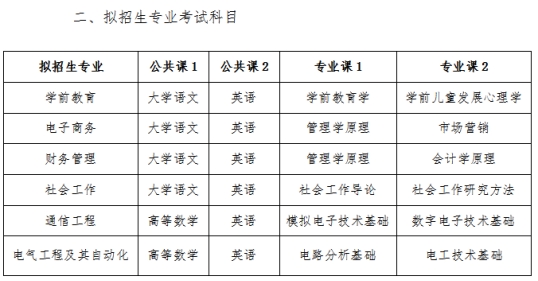 根据《安徽省教育厅关于下达2022年普通专升本招生计划的通知》(皖教发〔2022〕3号)要求,结合我校招生工作实际,现将我校2023年专升本拟招生专业及各专业招生范围和考试科目公布如下: