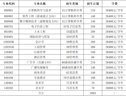 2022年阳光学院专升本招生计划