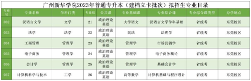 广州新华学院2023年普通专升本拟招生专业目录(普通批)