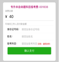 (2)准确填写个人报考信息,信息核对无误后点击“确认支付”即可,如下图
