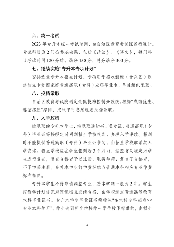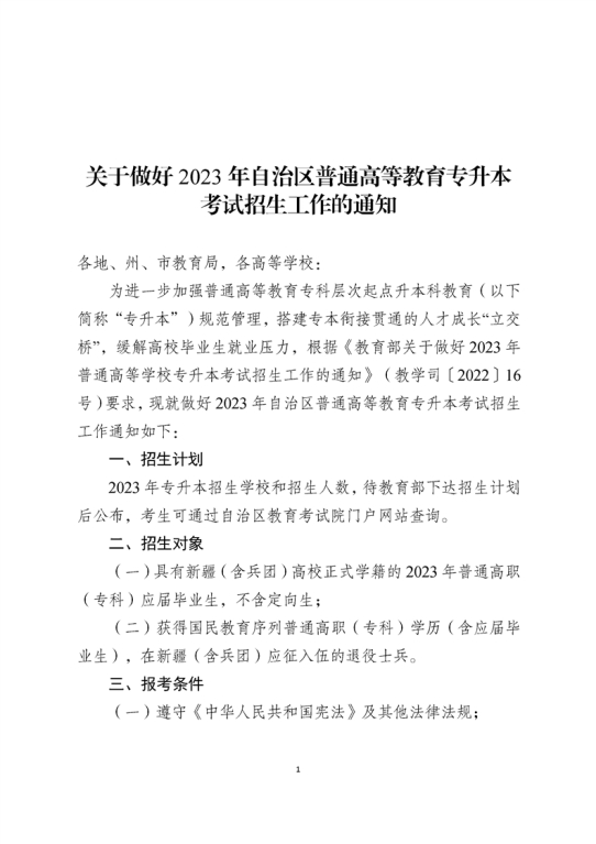2023年新疆自治区专升本考试招生工作的通知