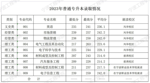 我校2023年普通专升本录取分数线详见下表,考生可在我校招生信息网【录取查询】自行查询拟录取结果。拟录取考生若不能如期毕业,将按规定取消录取资格,详见《浙江省教育考试院关于做好2023年选拔高职高专毕业生进入本科学习的通知》,我校按审核通过的名单办理录取手续,并寄发录取通知书。