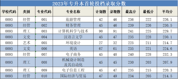 2023年宁波大学科学技术学院专升本首轮投档分数线