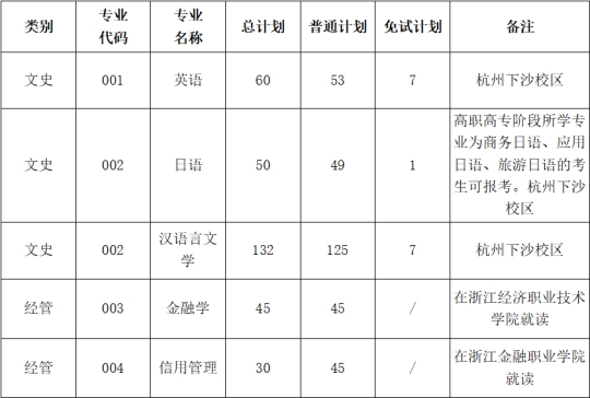 备注:最终招生计划以浙江省教育考试院公布为准。