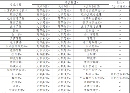 吉首大学张家界学院2024年专升本招生专业考试科目