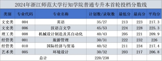 2024年浙师大行知学院专升本首轮投档情况