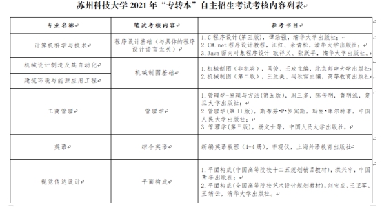 附件:苏州科技大学2021年“专转本”自主招生考试考核内容列表