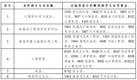 2.报考我校各专业的考生其专科阶段所学专业须满足以下要求: