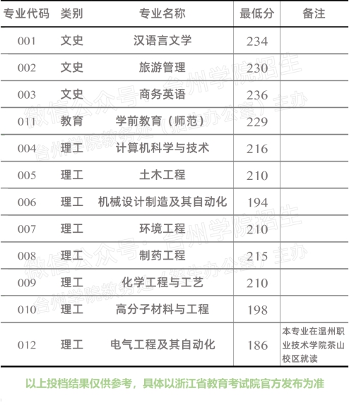 台州学院2020年普通高校专升本投档分数线 现将各专业投档情况公布如下: