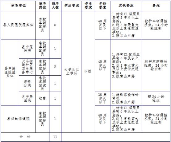3.年龄要求:急救车辆驾驶员要求为40周岁及以下指1984年5月27日及以后出生;收费员要求35周岁及以下指1989年5月27日及以后出生。