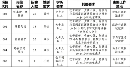 淮安市公安局洪泽分局警务辅助人员招聘公告