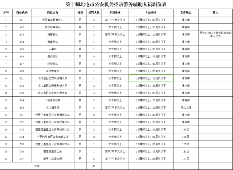 附件:1.第十师北屯市公安机关招录警务辅助人员岗位表