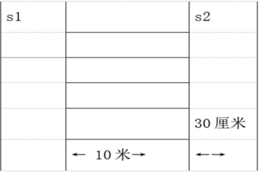 注意事项:当受测者取放木块时,脚不要越过S1和S2线。