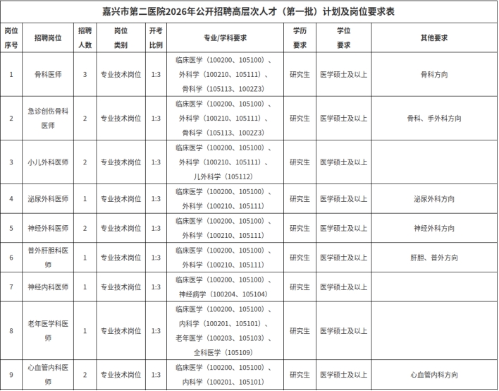 嘉兴市第二医院2026年公开招聘高层次人才公告(第一批)