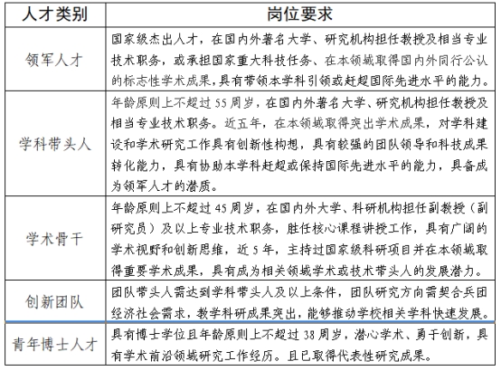 三、人才类别及要求