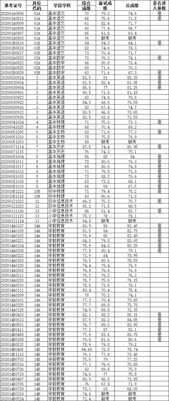 附:2020年秋季如东县教育系统公开招聘教师考试成绩和进入体检的人员名单