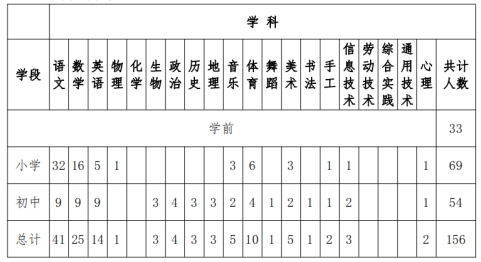 学校设计规模为180个班,其中幼儿园21个班,小学72个班,初中54个班,高中33个班,可容纳约8100学生。2021年秋季学校幼儿园、小学、初中三个学段同时招生开学。现面向全国诚招特、高级教师、在职骨干教师及应往届优秀毕业生。