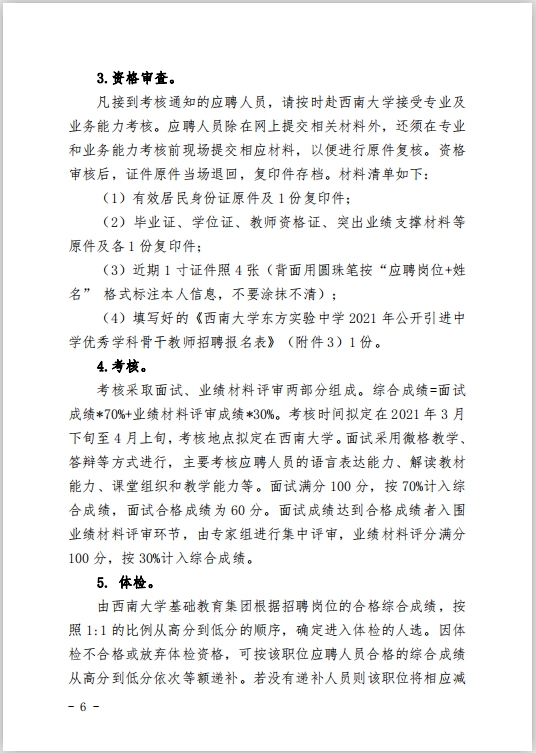 附件1:西南大学东方实验中学2021年公开引进中学骨干教师岗位计划表.xls