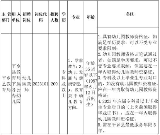 1.具体招聘人数和岗位条件详见《平乡县2023年公开招聘人事代理幼儿园教师岗位条件表》;