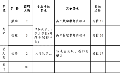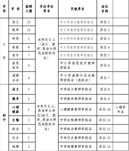 3.学历要求:本科及以上师范类院校(特定岗位可为非师范类院校,幼儿园为大专及以上)。