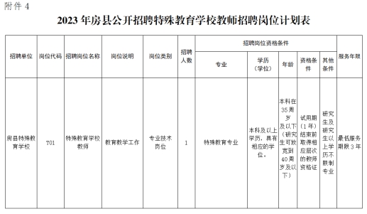 4、2023年房县公开招聘特殊教育学校教师岗位计划表