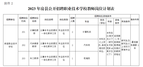 2、2023年房县二次公开招聘职业技术学校教师岗位计划表