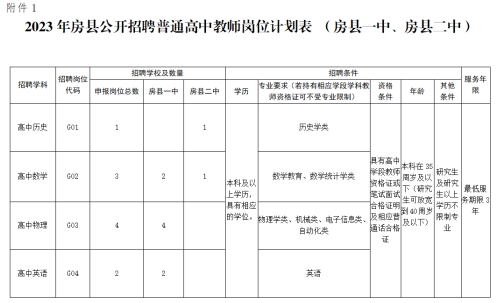 1、2023年房县二次公开招聘普通高中教师岗位计划表(房县一中、房县二中)