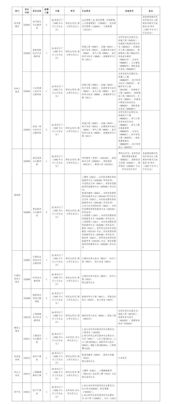 根据学院事业发展需要,现面向社会公开招聘以下工作人员: