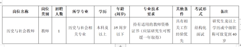 编外初中历史与社会教师 1 名